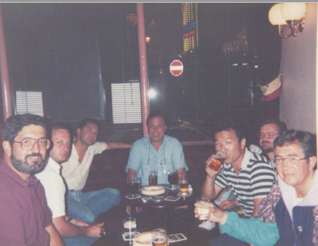 この中の一人が私です。イギリスのパブにて。
